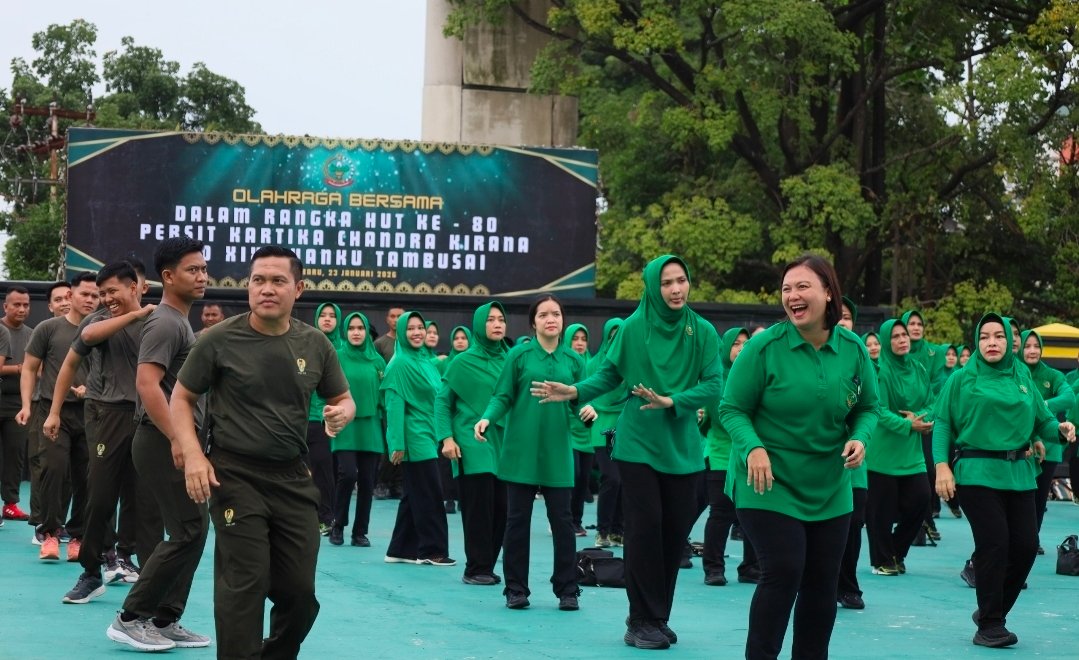 PEKANBARU || Dalam rangka memperingati Hari Ulang Tahun (HUT) ke-80 Persit Kartika Chandra Kirana Tahun 2026, Kodam XIX/Tuanku Tambusai melaksanakan kegiatan olahraga bersama di lapangan depan Makodam XIX/Tuanku Tambusai, yang dilanjutkan dengan donor darah, bertempat di Gedung Kharuddin Nasution Makodam XIX/Tuanku Tambusai, Jalan Mayor Ali Rasyid No. 1 Pekanbaru, Jumat (23/1/2026).