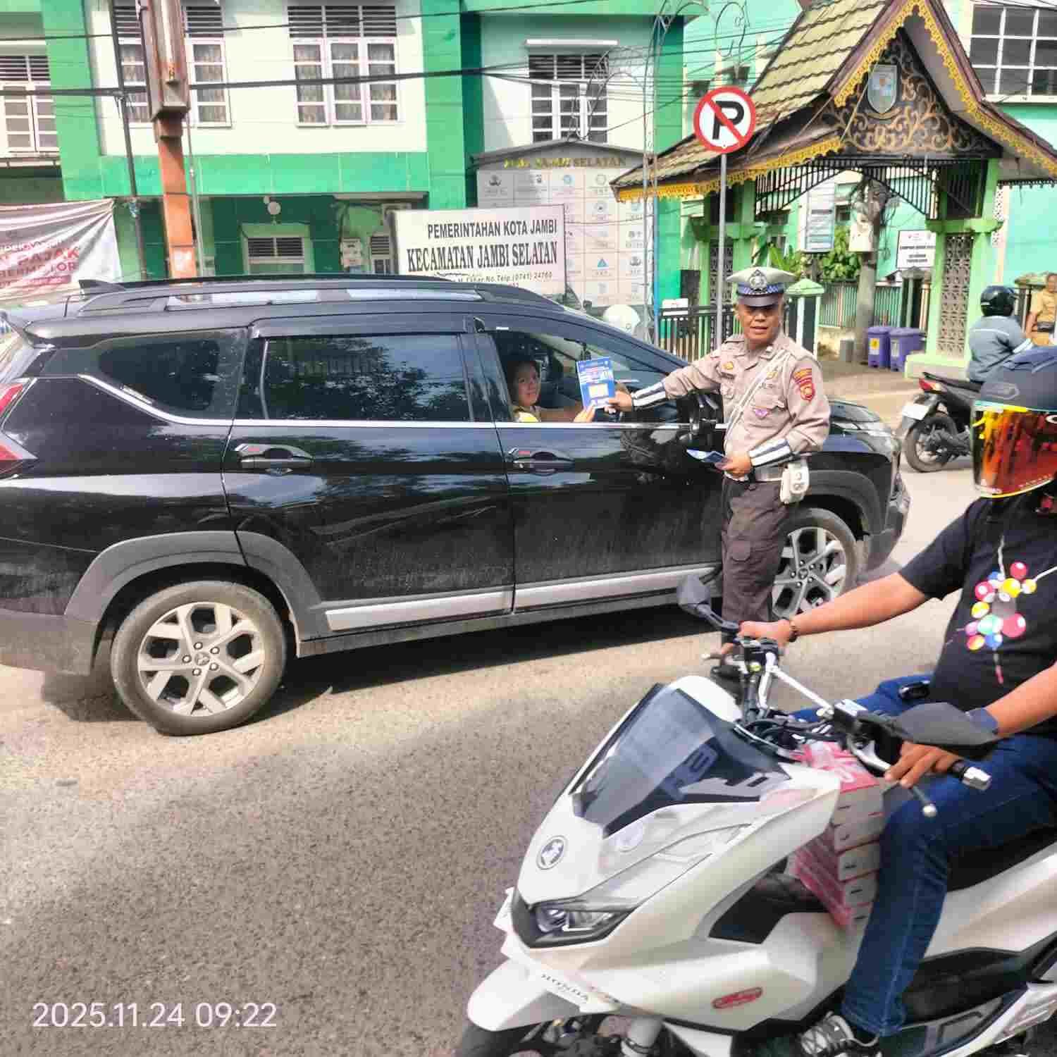 JAMBI.(Benuanews.com)-Satuan Lalu Lintas (Satlantas) Polresta Jambi melaksanakan kegiatan “Polantas Hadir” di ruas Jalan Kolonel Pol M. Taher, tepatnya di depan Stadion Persijam, Kelurahan Pakuan Baru, Kecamatan Jambi Selatan, Senin (24/11/2025) sekitar pukul 08.30 WIB.