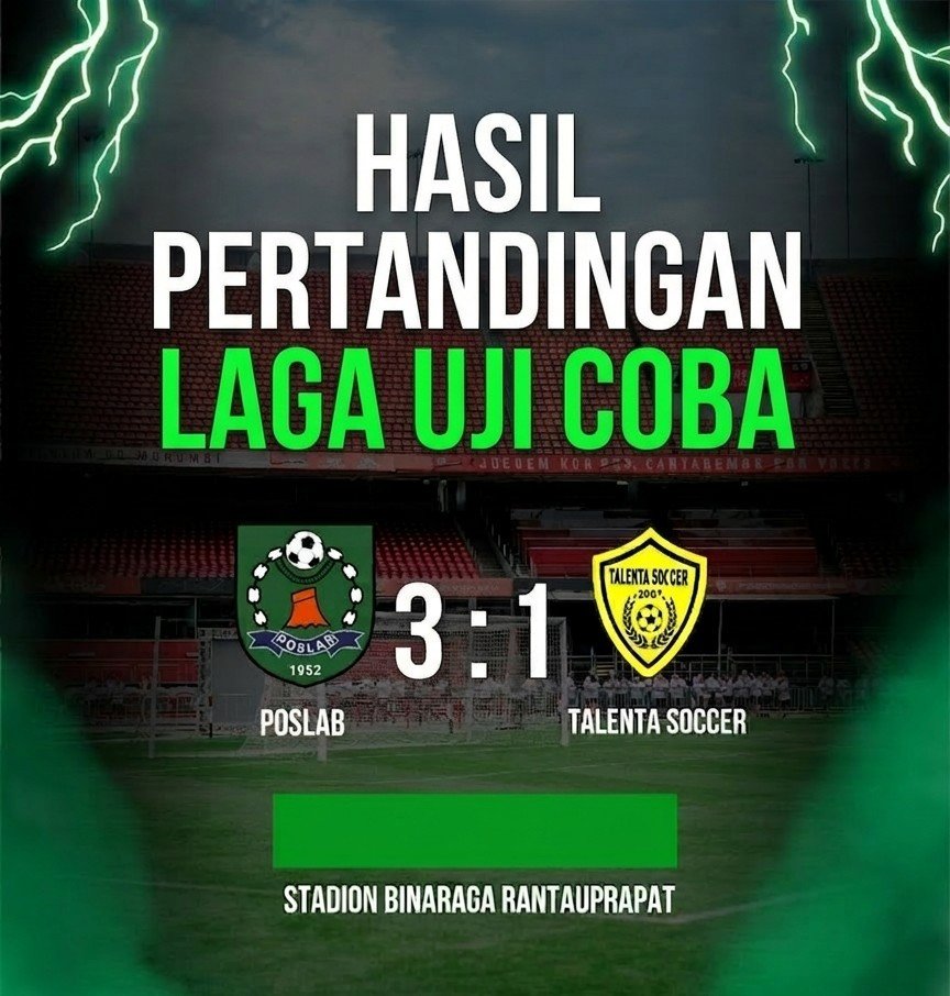 RANTAUPRAPAT | Benuanews.com – Poslab Labuhanbatu terus mematangkan persiapan menjelang bergulirnya kompetisi Liga 4 Musim 2026. Dalam laga uji coba sekaligus ajang seleksi pemain, tim berjuluk Laskar Ika Bina ini sukses menundukkan Talenta Soccer dengan skor meyakinkan 3-1 di Stadion Binaraga, Rantauprapat, Rabu sore (18/03/2026).