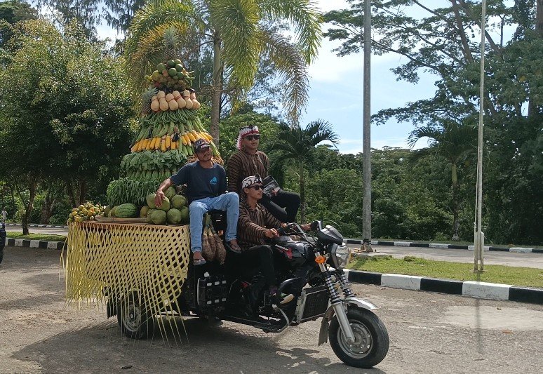 Peserta dari Desa Sipora Jaya dan Desa Sidomakmur mendisain kendaraan dengan berbagai hasil bumi Mentawai berupa sayur – sayuran.