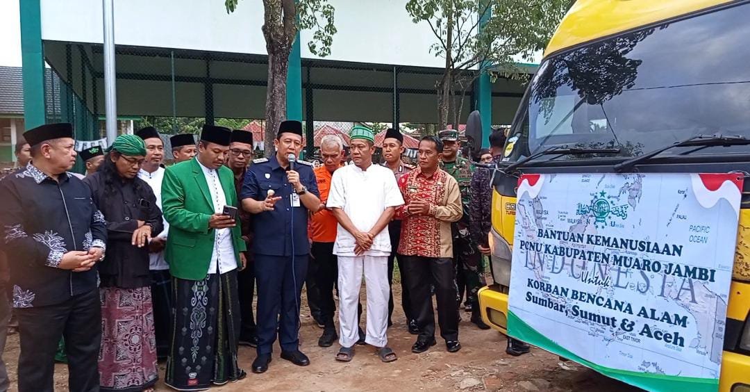 Muaro Jambi-(Benuanews.com)-Kepedulian terhadap sesama kembali ditunjukkan oleh masyarakat Kabupaten Muaro Jambi. Hari ini, Kamis (18/12/2025), Pengurus Cabang Nahdlatul Ulama (PCNU) Kabupaten Muaro Jambi menggelar acara pelepasan bantuan kemanusiaan secara besar-besaran untuk korban bencana di Sumatera Barat, Sumatera Utara, dan Aceh.