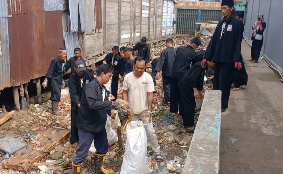 JAMBI(Benuanews.com)-Peduli terhadap lingkungan, pencak silat PSHT ranting Nipah Panjang, TNI,Polri,Pemerintah kecamatan, karang Taruna dan warga melaksanakan kegiatan gotong royong membersihkan sampah di beberpa lokasi terutama di pasar Kelurahan Nipah Panjang 2, Kecamatan Nipah Panjang kabupaten Tanjung Jabung Timur, provinsi Jambi,