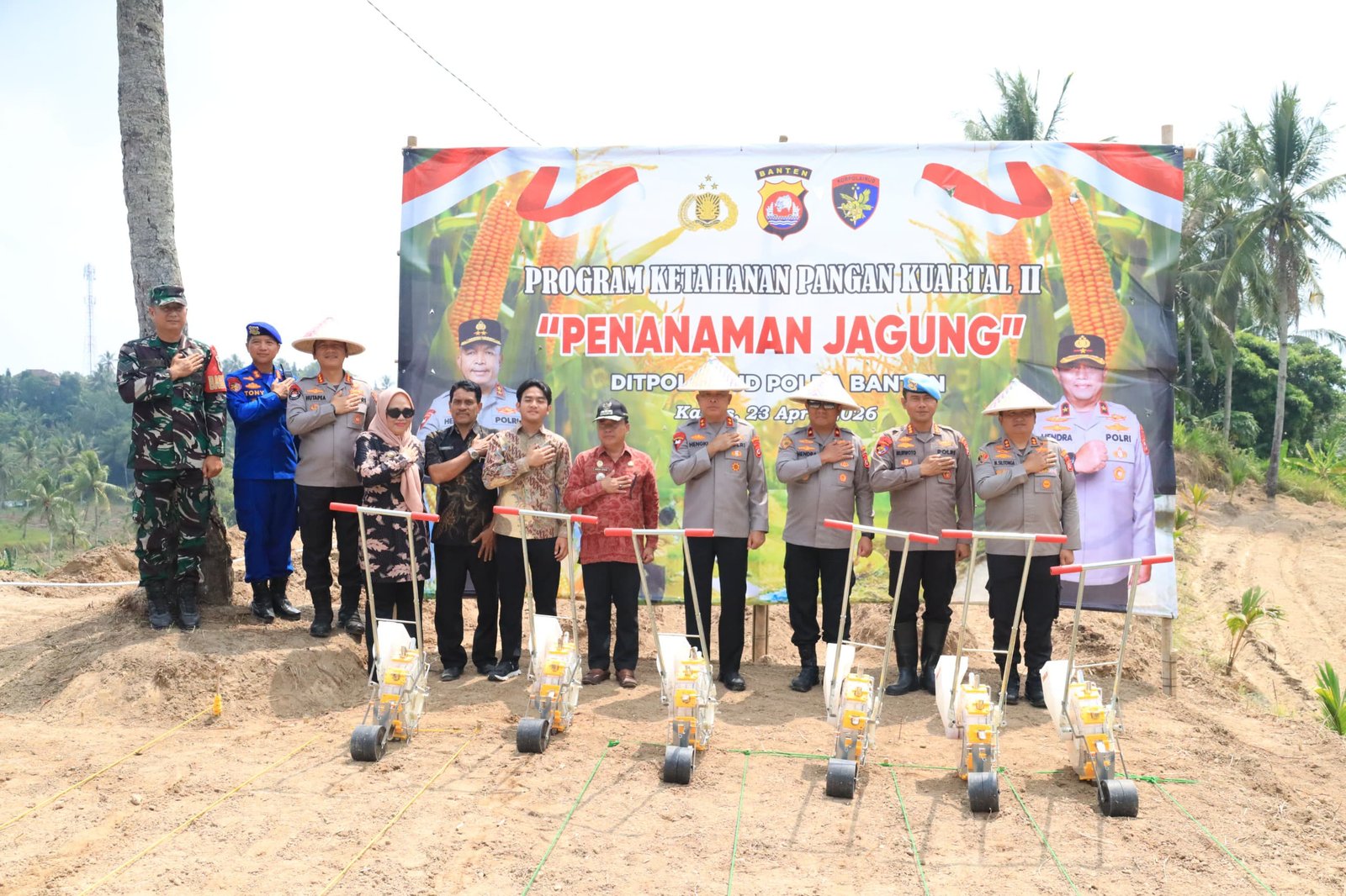 Dalam kesempatannya, Kapolda Banten Irjen Pol Hengki menyampaikan bahwa kegiatan penanaman jagung kuartal II tahun 2026 di lahan ketahanan pangan Ditpolairud Polda Banten merupakan wujud komitmen Polda Banten dalam mendukung program pemerintah di bidang ketahanan pangan.