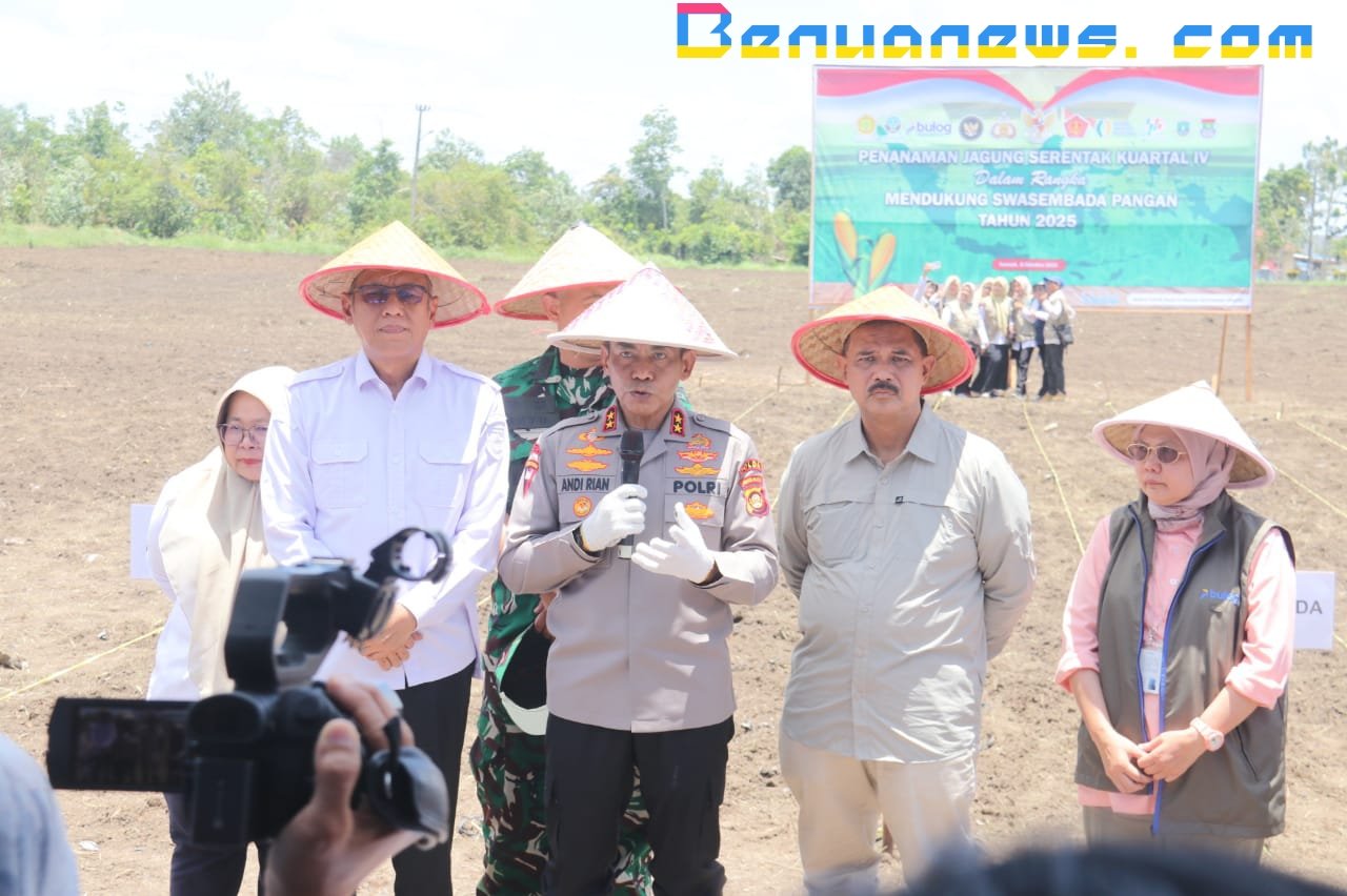 Kabid Humas Polda Sumsel, Kombes Pol Nandang Mu’min Wijaya, S.I.K., M.H., menyatakan, “Polda Sumsel berkomitmen mendukung ketahanan pangan nasional dengan mengamankan seluruh kegiatan penanaman jagung, memfasilitasi sinergi antara pemerintah dan masyarakat, serta memastikan kegiatan berjalan aman dan tertib.”