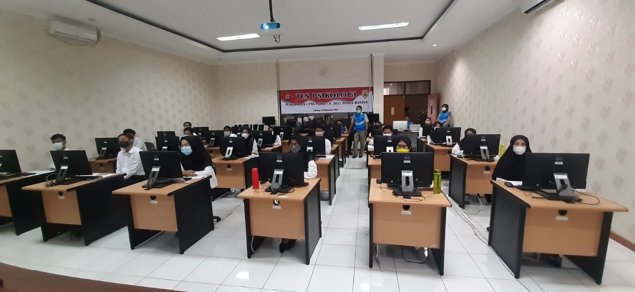 Serang – Benuanews.com – Irwasda Polda Banten Kombes Pol Ady Soeseno yang diwakili oleh Kompol Abdul Syukur beserta pengawas internal Itwasda Polda Banten melaksanakan pengawasan tes Computer Assited Test (CAT) Psikologi penerimaan CPNS Polri Tahun Anggaran 2021 pada Minggu (12/12)