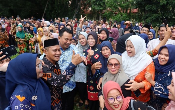 Bupati yang terlihat mengenakan batik dengan telaten melayani permintaan foto bersama Saleh dan seluruh ASN Disporapar, sehingga terciptalah suasana yang begitu akrab dengan Bupati.