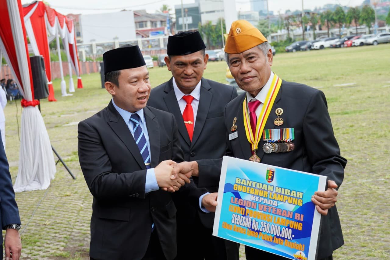 Sebagai wujud penghargaan terhadap jasa para pejuang, dalam rangkaian upacara peringatan Hari Pahlawan juga dilakukan penyerahan bantuan hibah dan kursi roda secara simbolis kepada perwakilan Legiun Veteran Republik Indonesia (LVRI) oleh Sekretaris Daerah Provinsi Lampung, Marindo Kurniawan.