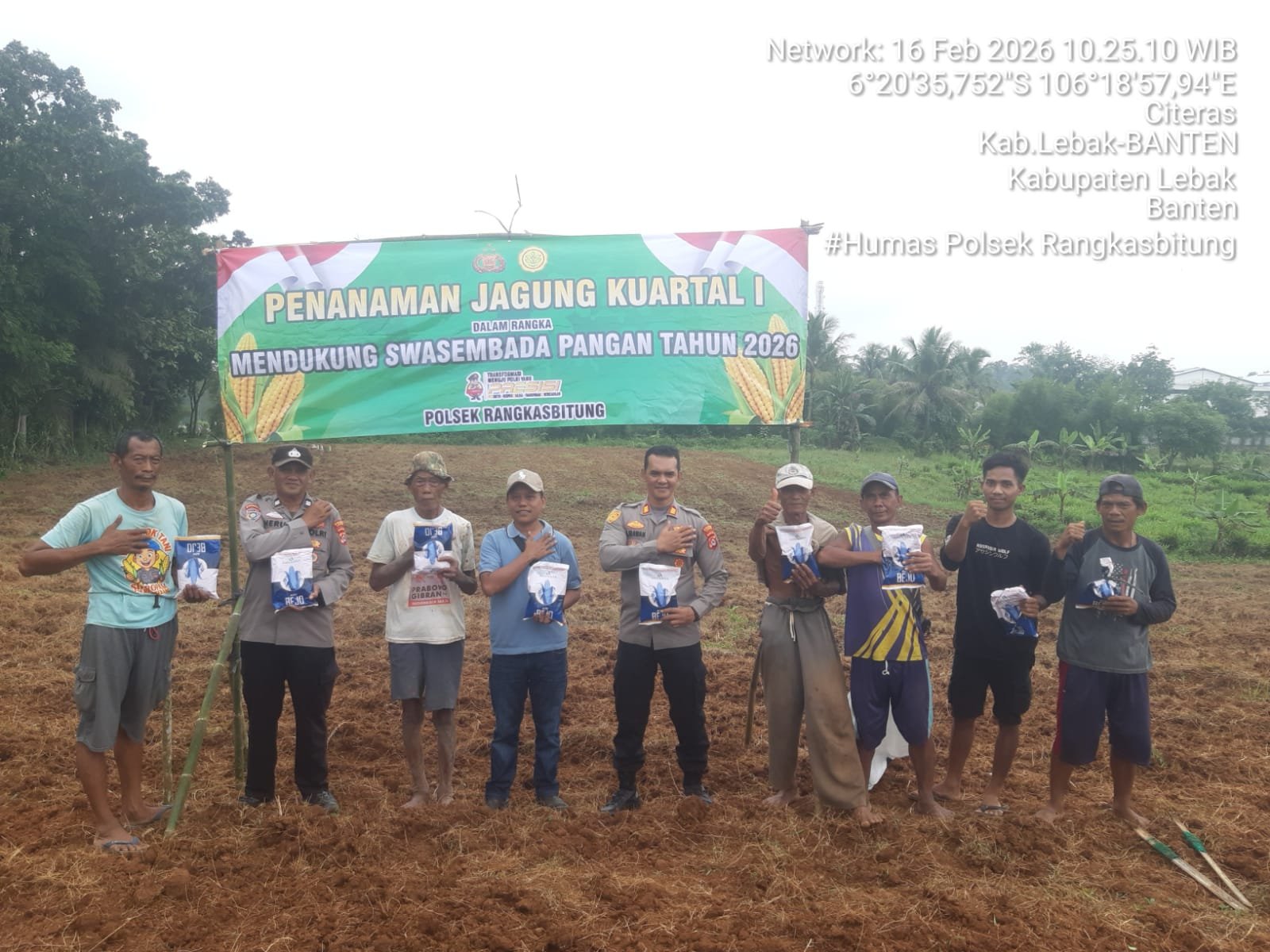 Kapolres Lebak Polda Banten AKBP Herfio Zaki,.S.I.K,.M.H,melalui Kapolsek Rangkasbitung AKP Adi Irawan,.SH, menyampaikan bahwa pelaksanaan penanaman jagung hibrida ini terlaksana atas berkat kerjasama dengan jajaran Pemerintahan Desa Citeras dan kelompok tani.
