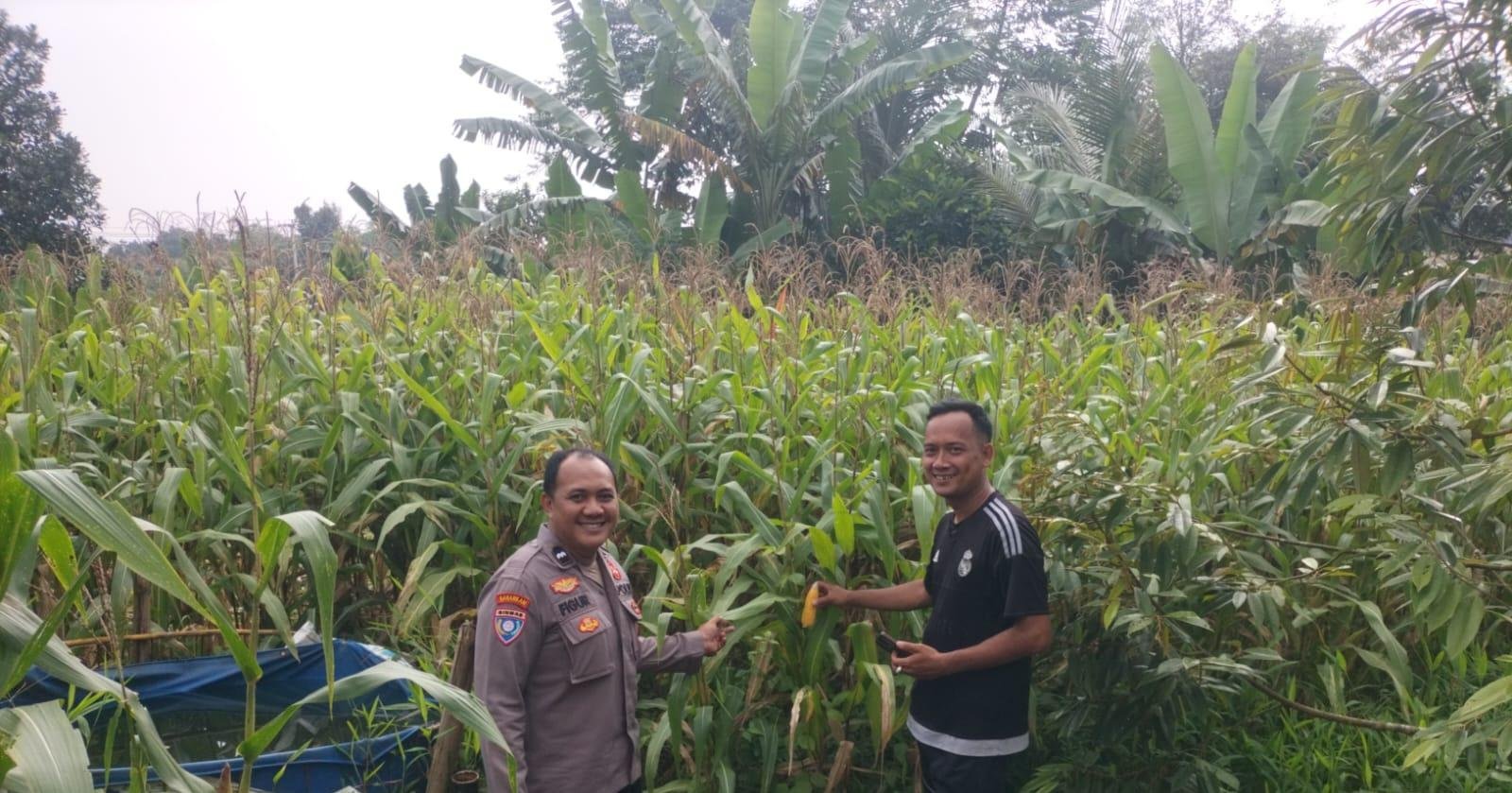 LEBAK Benuanews.com Memastikan proses perkembangan tanaman pohon Jagung hibrida dalam program ketahanan pangan, Bhabinkamtibmas Polsek Rangkasbitung AIPDA Figur Rabo Saputro.