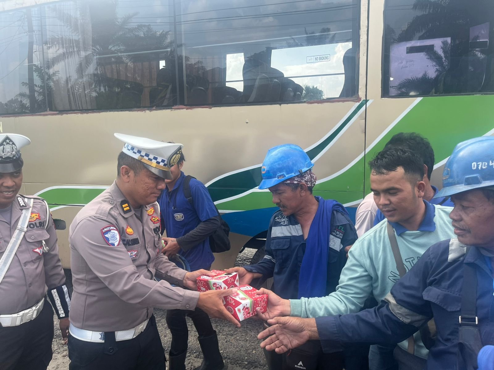 Melalui kegiatan ini, polisi lalu lintas menyampaikan pesan keselamatan berlalu lintas kepada pengemudi dan penumpang bus sekolah maupun bus karyawan. Selain berdialog, petugas juga memberikan snack sebagai bentuk kedekatan Polantas dengan masyarakat.