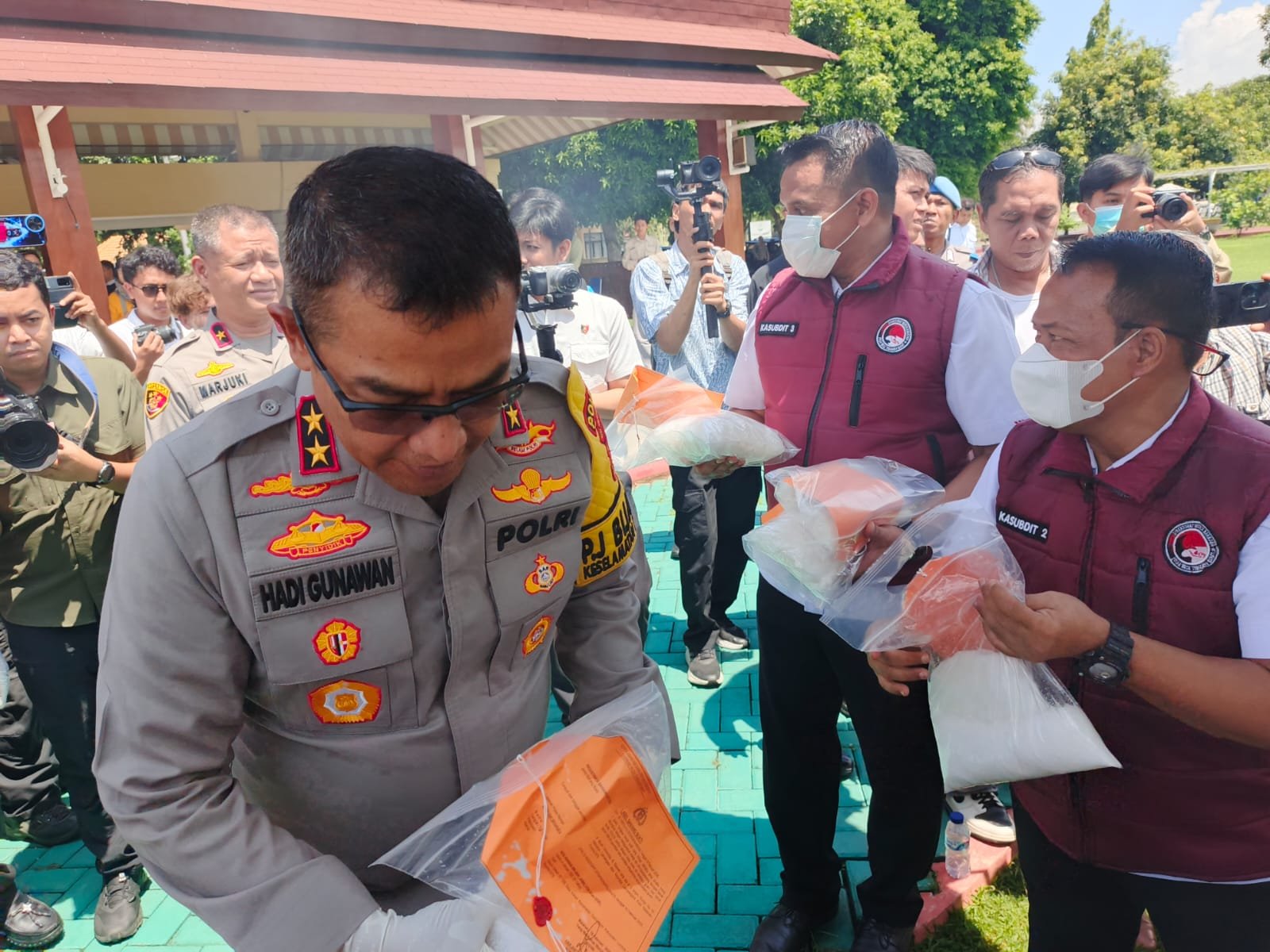 Adapun jumlah barang bukti narkotika yang dimusnahkan dalam kegiatan ini meliputi: Sabu seberat 5,5 Kg, Mefedron (Narkotika Golongan I) sebanyak 62 butir dan Ekstasi (Narkotika Golongan I) sebanyak 9 butir.