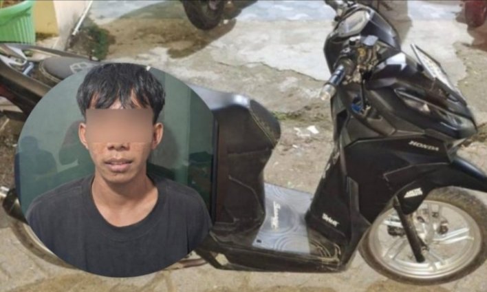 Selain pelaku, petugas turut mengamankan barang bukti berupa dua unit handphone dan satu unit sepeda motor yang diduga berkaitan dengan aktivitas pelaku.