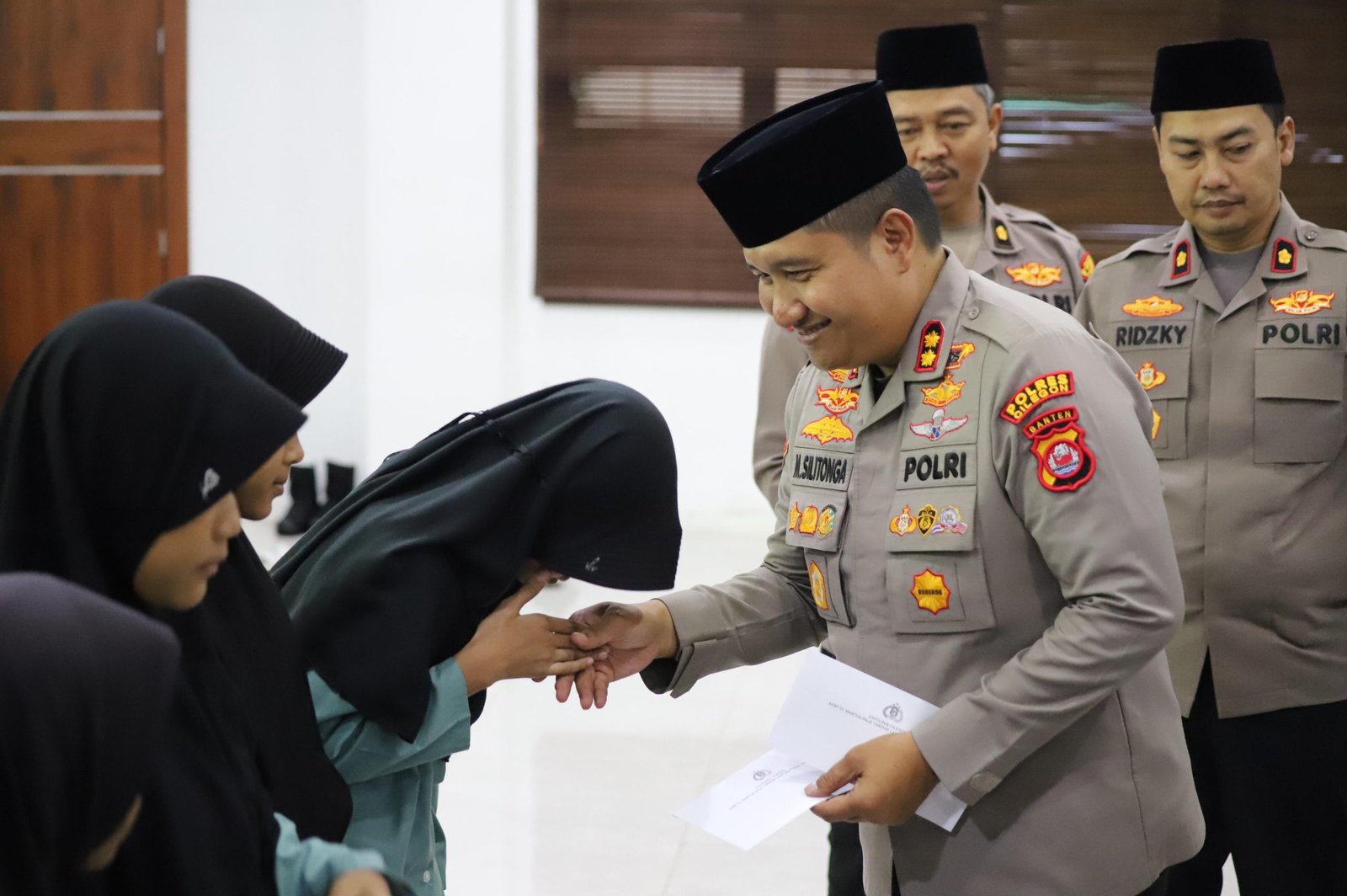 Suasana kebersamaan terlihat hangat saat Kapolres Cilegon bersama Bhayangkari memberikan santunan kepada anak-anak yatim yang hadir dalam kegiatan tersebut. Setelah itu kegiatan dilanjutkan dengan ramah tamah, foto bersama dengan tokoh agama, tokoh masyarakat, mahasiswa, BEM dan insan media.