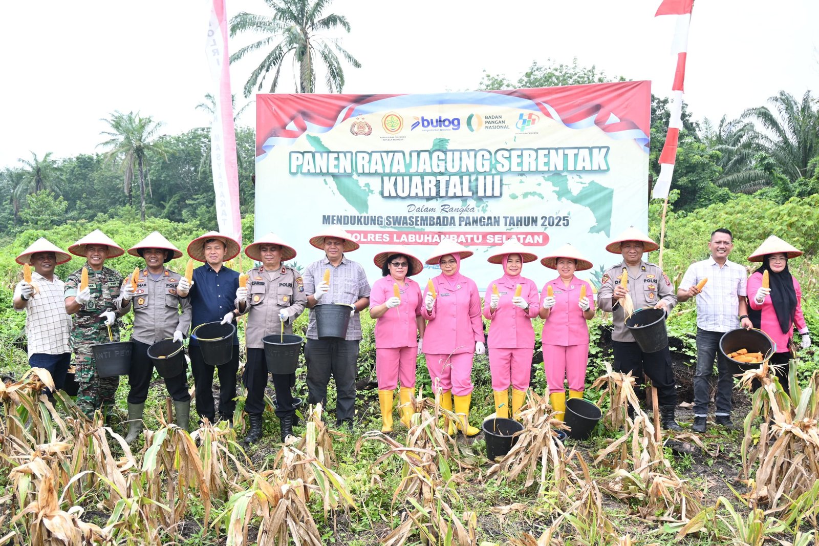Polres Labuhanbatu Selatan bersama Forkopimda melaksanakan Panen Raya Jagung Serentak Kuartal III Tahun 2025 di Dusun Sumberjo, Desa Asam Jawa, Kecamatan Torgamba, Kabupaten Labuhanbatu Selatan.Sumatera Utara (27/09-2025) Kegiatan ini merupakan bagian dari program nasional untuk meningkatkan swasembada pangan tahun 2025.