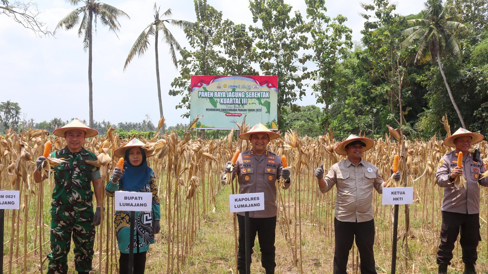 Panen raya tersebut dihadiri Kapolres Lumajang AKBP Alex Sandy Siregar, Dandim 0821 Lumajang, pejabat utama Polres, Bulog Kabupaten Lumajang, Forkopimka Jatiroto, serta kelompok tani setempat.