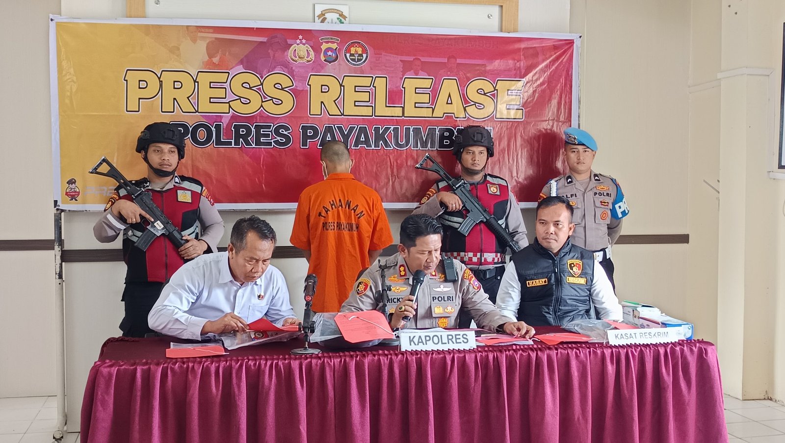 Penetapan tersangka ini disampaikan secara langsung oleh Kapolres Payakumbuh AKBP Ricky Ricardo, S.I.K.S.H.M.H didampangi oleh Kasat Reskrim IPTU Andrio P Siregar, S.H.M.H pada moment Press Release yang di laksanakan di Aula Polres Payakumbuh, Senin (08/12) pagi sekira pukul 10.00 Wib.