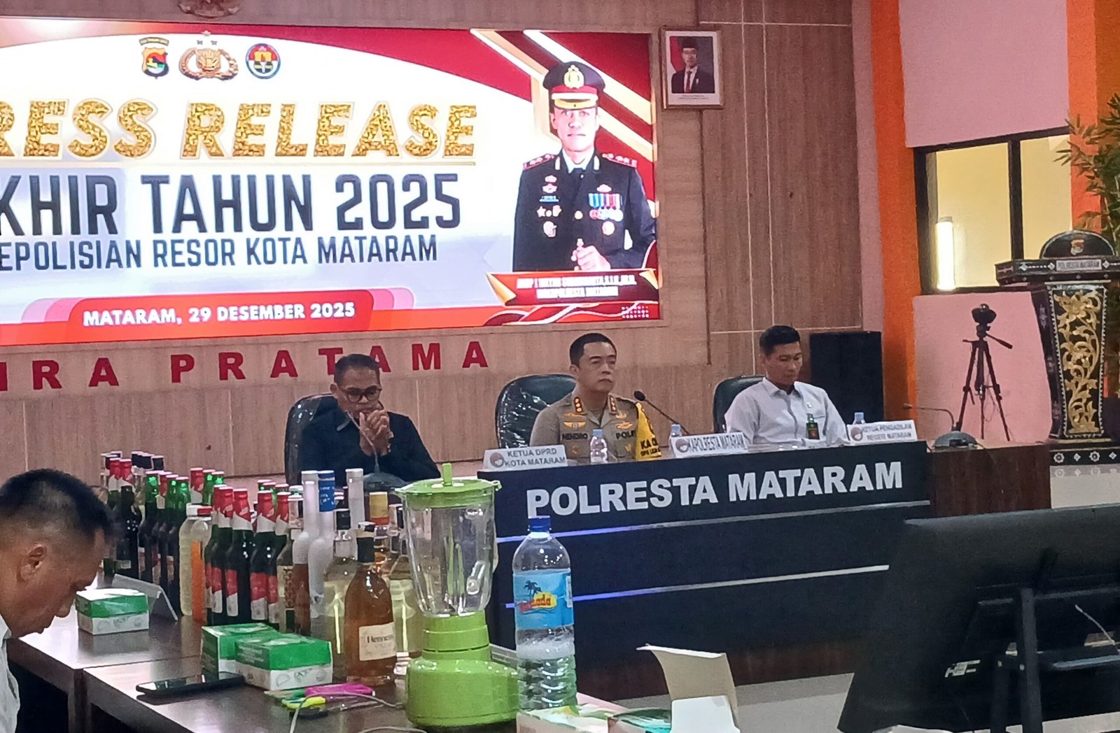 Komitmen tersebut disampaikan Kapolresta Mataram Kombes Pol. Hendro Purwoko, SIK., MH., saat memimpin Konferensi Pers Akhir Tahun 2025 di Gedung Wira Pratama Mapolresta Mataram, Senin (29/12/2025). Ia menegaskan bahwa hingga akhir tahun, situasi Kamtibmas di wilayah hukum Polresta Mataram terpantau aman dan kondusif.