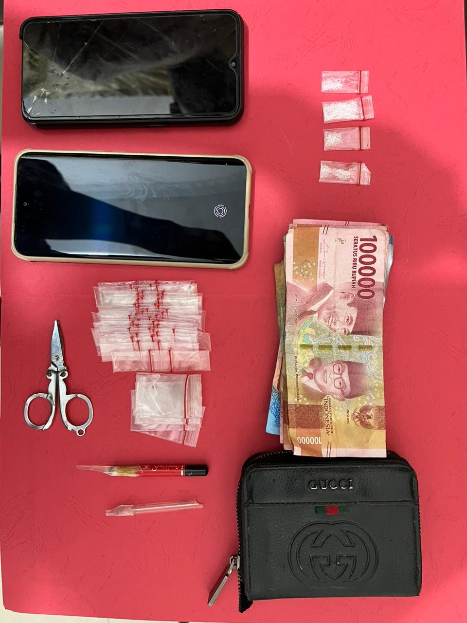 Dari hasil penggeledahan, polisi menemukan tiga plastik klip transparan berisi narkotika jenis sabu dengan berat bruto 0,48 gram, satu unit telepon genggam Oppo A12, serta uang tunai Rp200 ribu. Dalam pemeriksaan awal, LS mengaku memperoleh sabu tersebut dari AK alias Wawan.