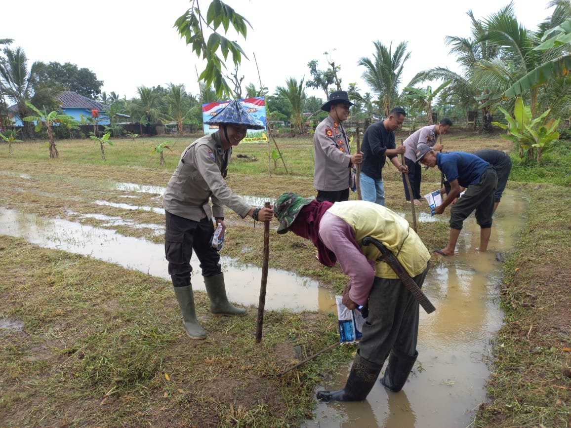Lebak Benuanews.com Dalam rangka mendukung swasembada jagung program Asta Cita Presiden Republik Indonesia Prabowo Subianto Polsek Panggarangan bersama Muspika Dampingi Kapolsek Panggarangan melaksanakan penanaman jagung serentak Kuartal 1 Tahun 2026. Di Kampung Nagrak Desa Situregen Kecamatan Panggarangan Kabupaten Lebak Banten Sabtu 07/03/2026.