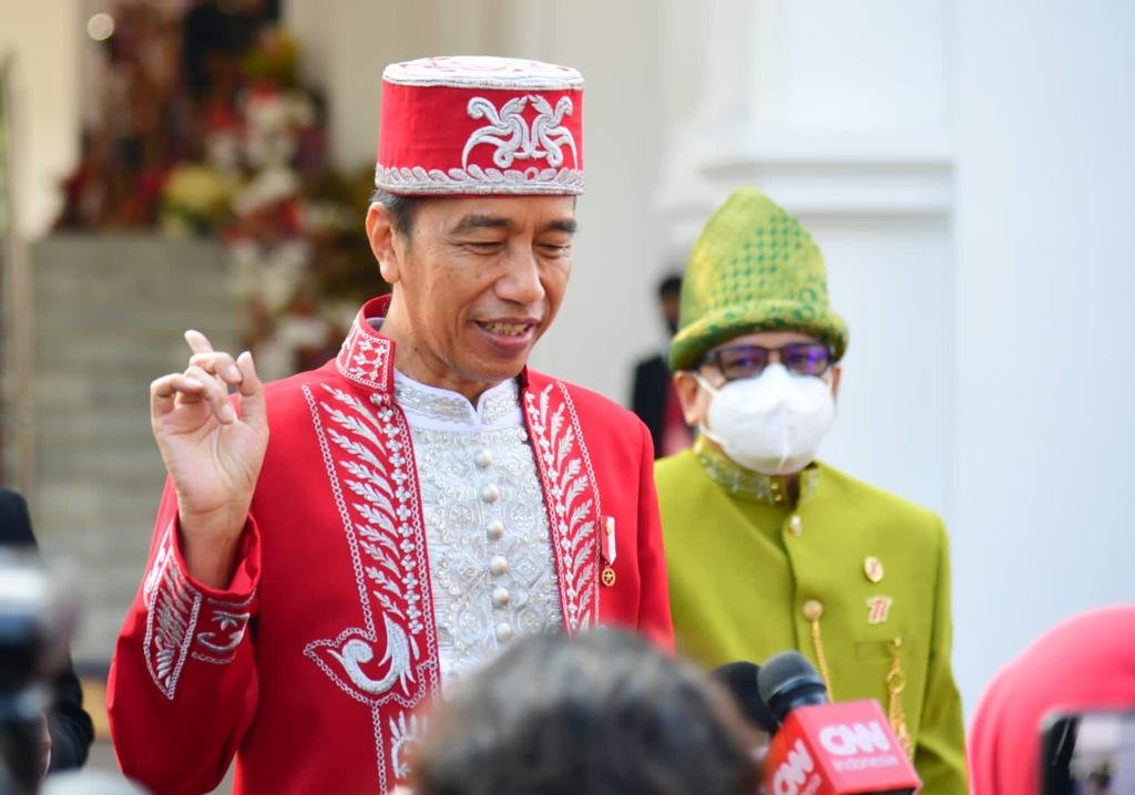 “Dulu pernah Aceh, Sumatera Barat, pernah juga Kalimantan Selatan, pernah Sunda, pernah Jawa, Betawi, kemudian ke sana Bali, Sasak, Bugis, pernah semua. Memang kekayaan budaya pakaian adat ini memang ribuan. Jumlahnya ribuan. Nanti sampai ke Maluku, Papua, semuanya nanti semuanya akan kita angkat,” ucap Presiden pada HUT ke-75 RI.