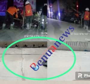 Proyek Beton jalan Bunut-pertiwi APBN 2023 Rp.29,5 M.Baru di perbaiki Sudah Retak,Besi sebelah kiri tak terpasang’ pondasi Dasar asal jadi”