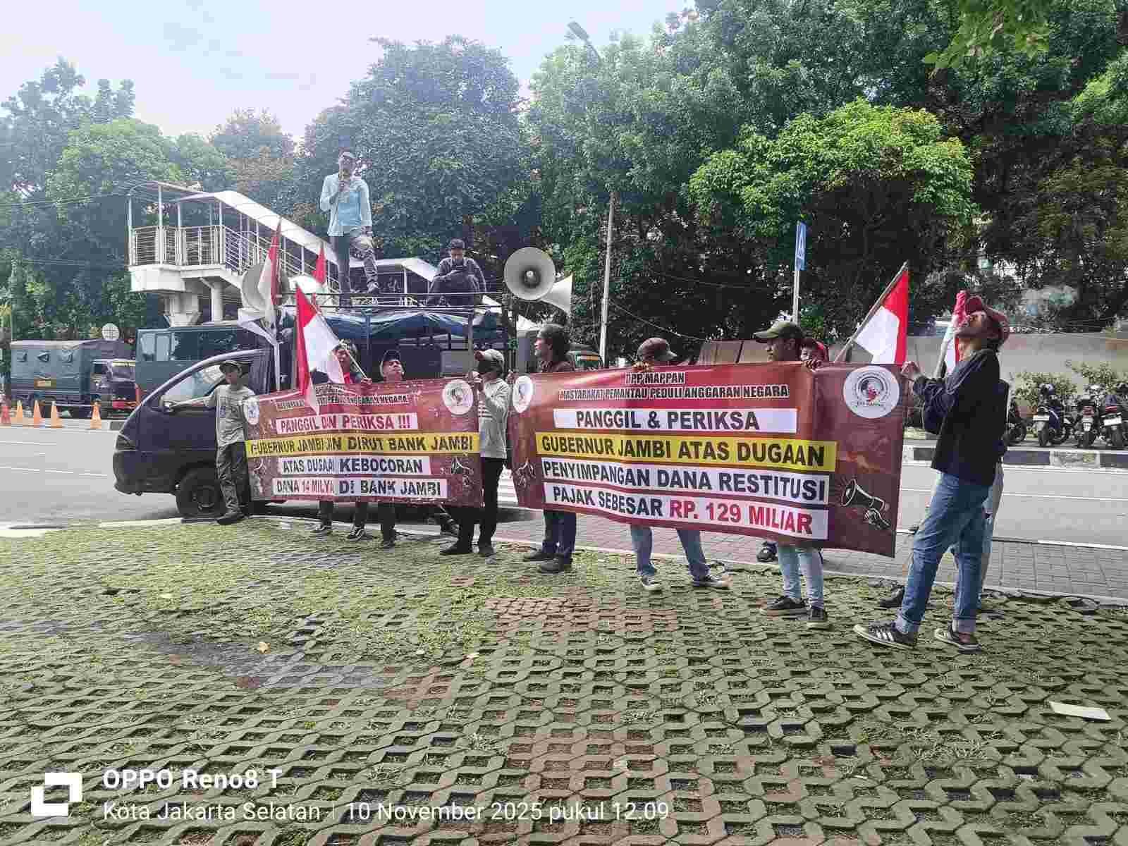 Sekretaris Jenderal DPP LSM Mappan sekaligus koordinator lapangan aksi, Hadi Prabowo, mengatakan bahwa pihaknya menerima banyak laporan masyarakat mengenai dugaan penyimpangan keuangan daerah di Jambi yang belum ditindaklanjuti oleh aparat penegak hukum.