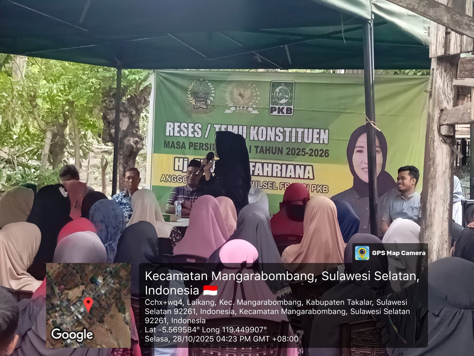 Selasa 28 Oktober 2025 Anggota DPR Provinsi Sul-sel Hj.Fadila Fahriana gelar reses di desa laikang kecamatan laikang kabupaten takalar.