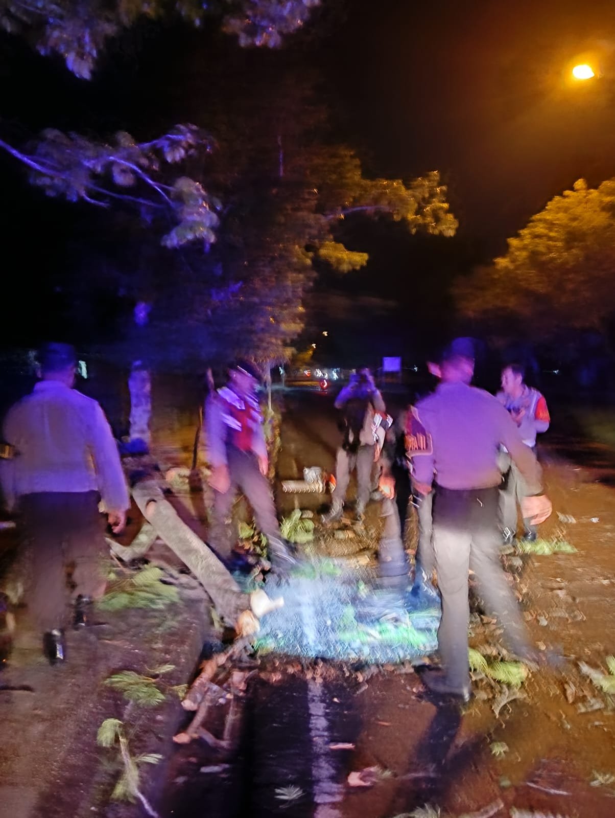 “Kami mengimbau masyarakat untuk tetap waspada saat berkendara, terutama di area yang banyak pepohonan besar ketika cuaca tidak menentu. Jangan ragu untuk segera melapor jika menemukan gangguan kamtibmas atau kejadian darurat di jalan raya,” tutupnya.