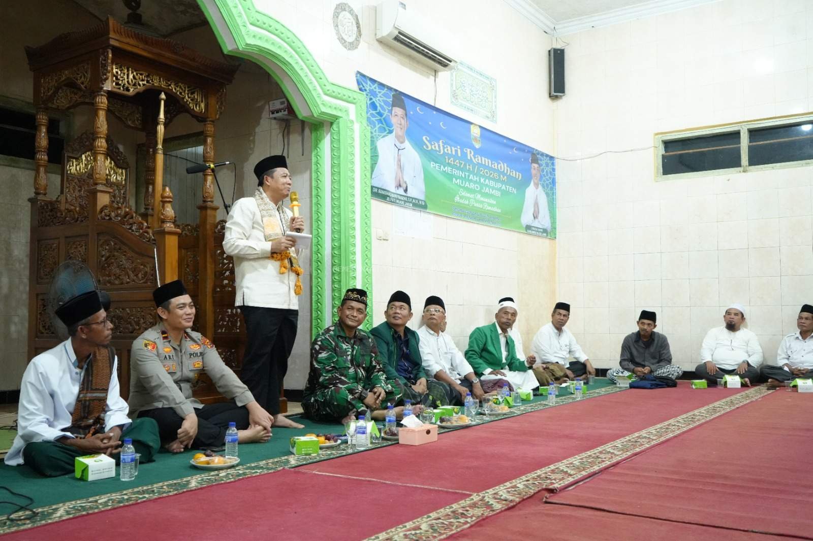 MUARO JAMBI – Bupati Muaro Jambi Dr. Bambang Bayu Suseno,SP.MM.M.Si (02/3/2026) didampingi sejumlah Kepala OPD mengakhiri rangkaian Safari Ramadhan 1447 H/2026 M di Kecamatan Bahar Selatan, tepatnya di Masjid Baiturrahman Unit 8A Desa Tri Jaya ,Kegiatan tersebut menjadi penutup kunjungan pemerintah daerah di sejumlah kecamatan selama bulan suci Ramadhan.