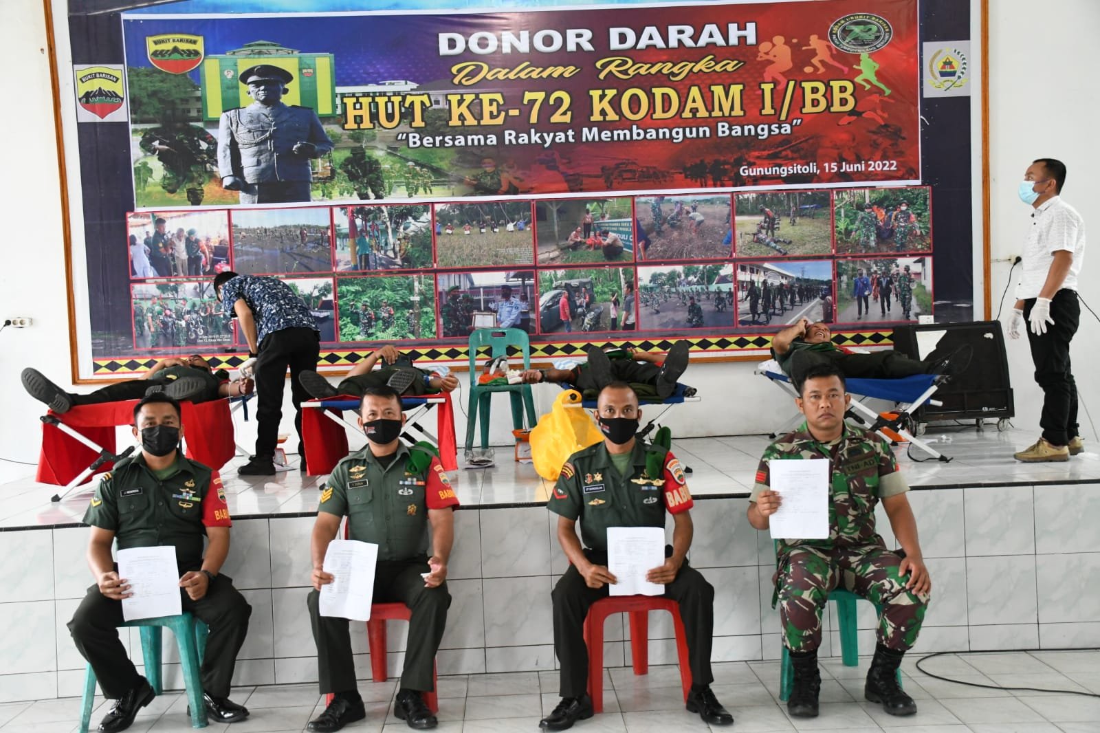 ” Pertama Kami Mengucapkan Selamat memperingati HUT ke 72 Kodam I/BB Tahun 2022 kita berharap kantong darah yang ada ini, bisa bermanfaat bagi masyarakat yang membutuhkan dan berharap kegiatan ini berkesinambungan”. Pungkasnya