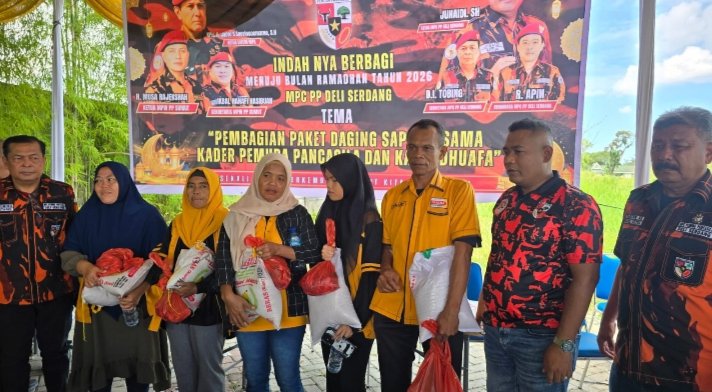 DELI SERDANG-Benuanews.com-Menyambut bulan Suci Ramadhan 1447 Hijriah yang jatuh pada Kamis (19/2/2026), Ketua MPC Pemuda Pancasila (PP) Kabupaten Deliserdang, Junaidi, SH ) menyembelih lima ekor lembu untuk dibagikan ke anggota dan pengurus MPC PP serta kaum dhuafa di Mutiara Palace pada Rabu (18/2/2026) pagi.