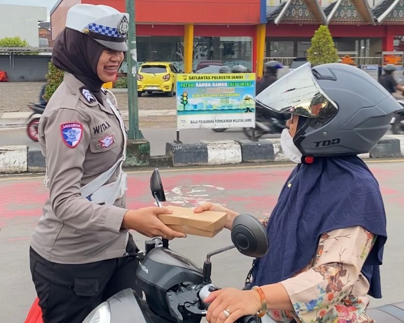 Program Jumat Berkah Sat Lantas Polresta Jambi terus digelar sebagai komitmen pelayanan humanis dan mendekatkan polisi dengan masyarakat.