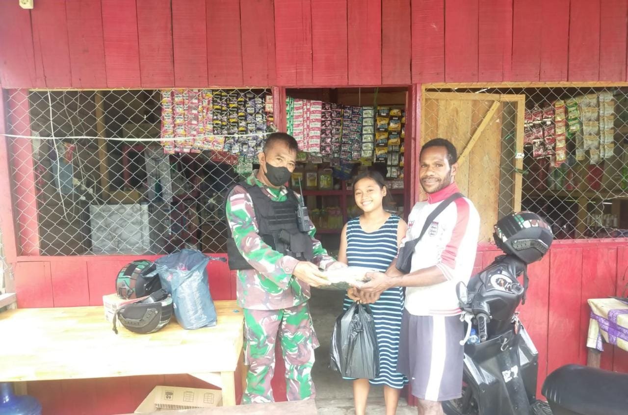 Keerom – Sebagai bentuk kepedulian kepada masyarakat di wilayah binaannya, Pasiter Satgas Pamtas RI-PNG Yonif 711/Rks Letda Inf Stenli Andaria bersama anggota, memberikan bantuan kepada warga yang sedang kedukaan dan memberikan layanan kesehatan kepada keluarganya, di Kampung Wonorejo, Distrik Manem, Kab. Keerom, Jayapura, Rabu (02/02/2022).