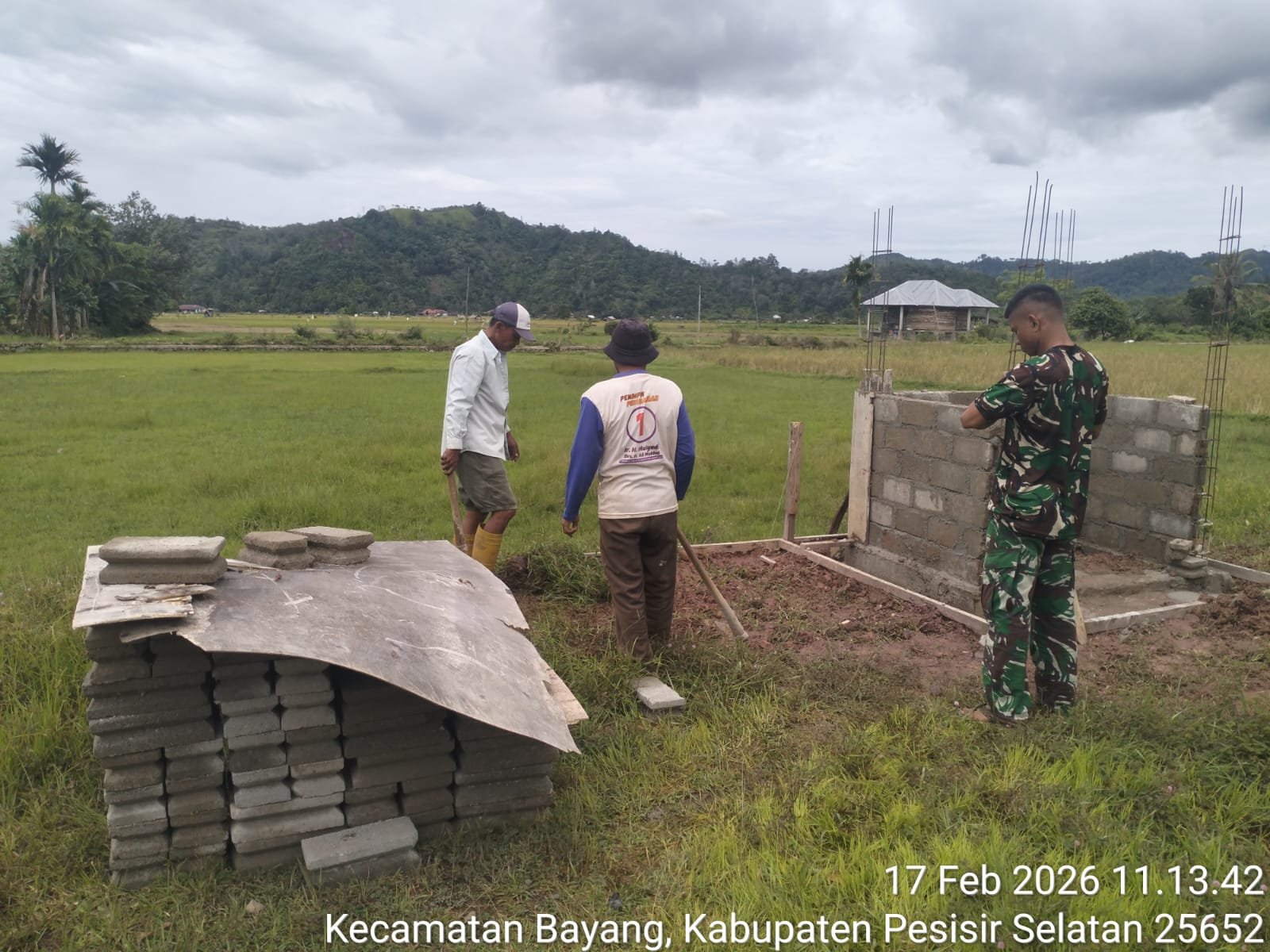 Personel Satgas TNI Manunggal Membangun Desa (TMMD) ke-127 TA 2026 Kodim 0311/Pessel bergerak cepat menuntaskan pekerjaan melanjutkan progres pembangun titik MCK dan Sumur Bor Nagari Gurun Panjang Utara, pada Selasa ( 17/2/2026 ).