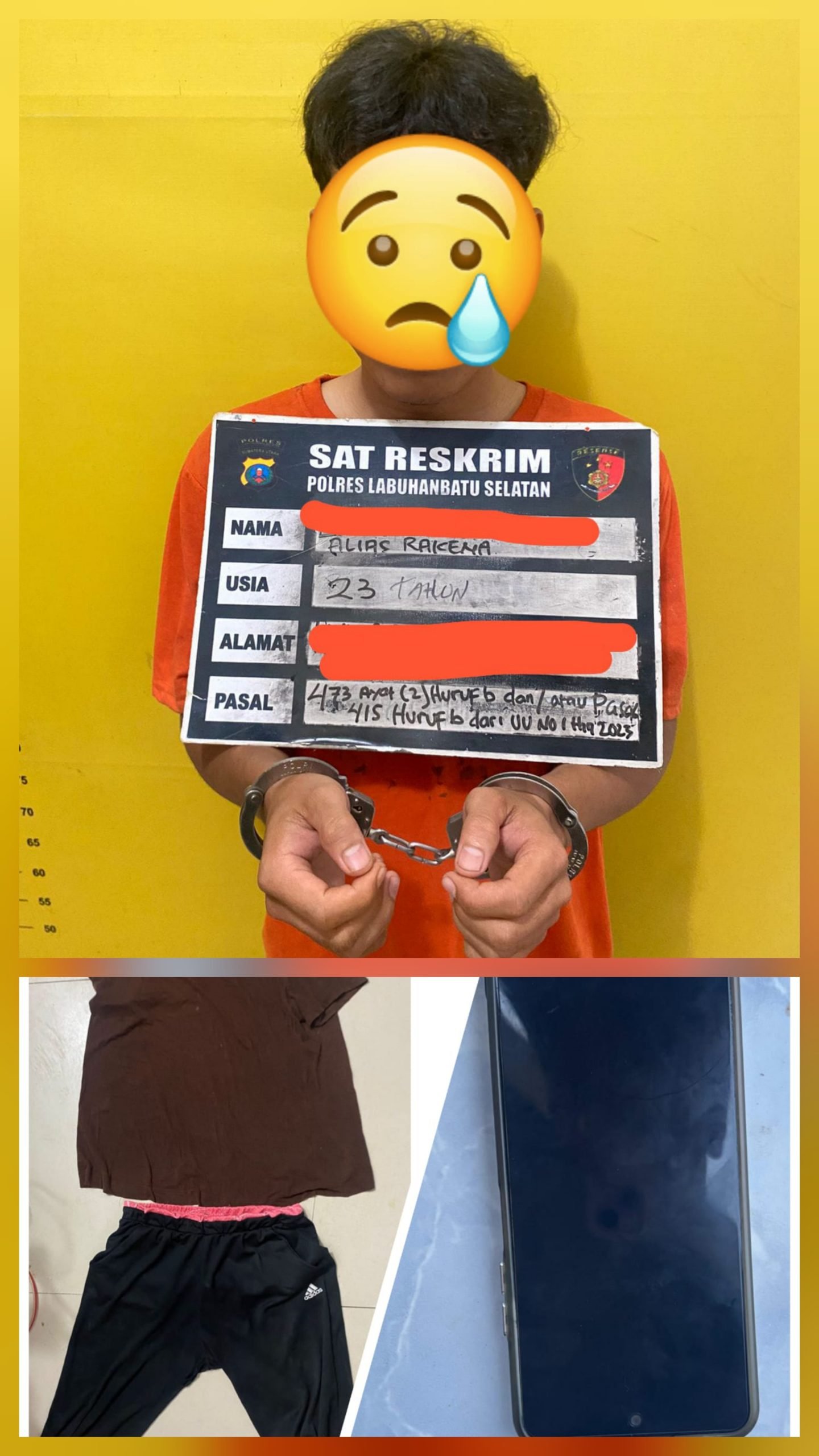 Dalam penanganan perkara ini, polisi turut mengamankan barang bukti berupa satu unit telepon genggam milik pelaku serta satu stel pakaian.