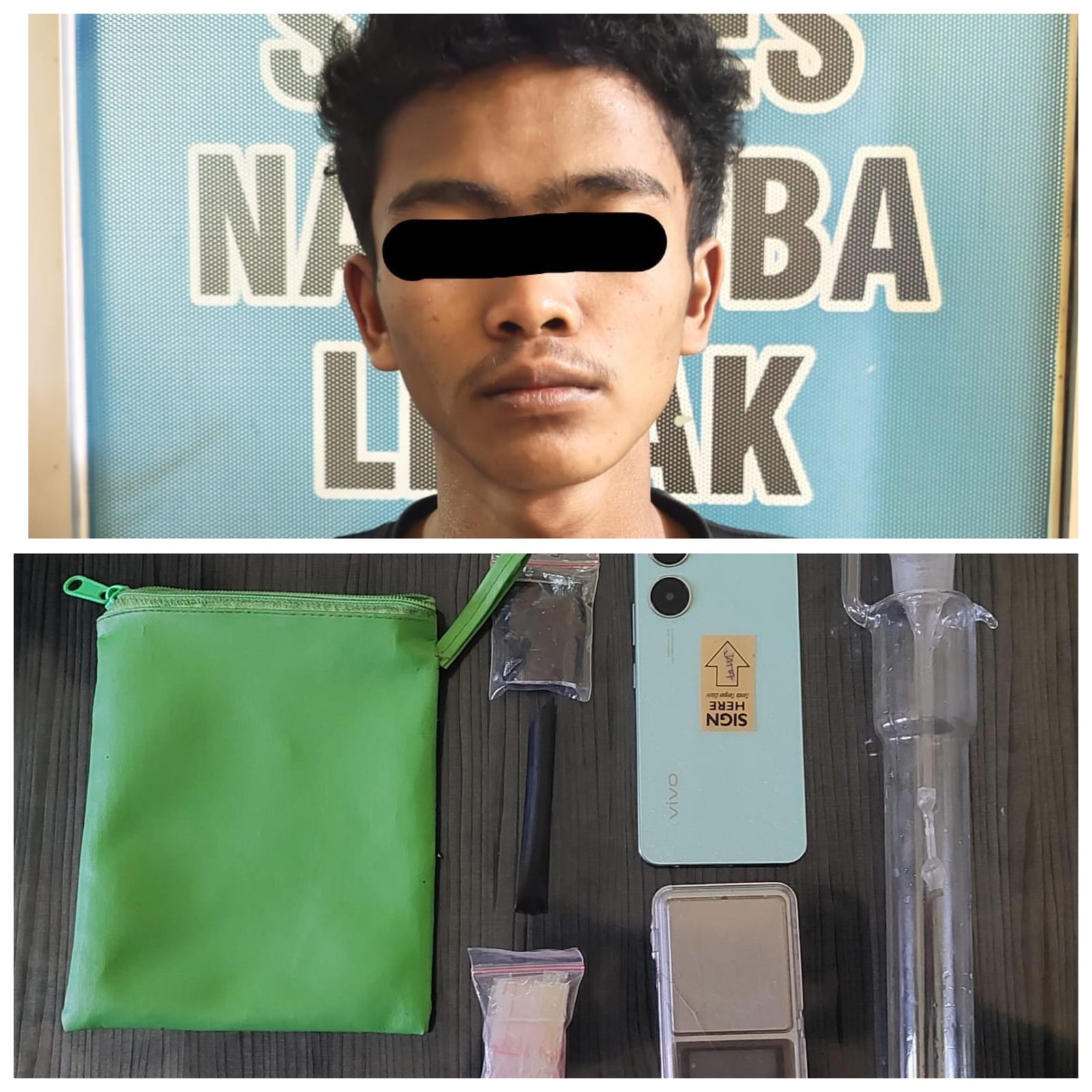 Tersangka ditangkap dengan barang bukti 1 buah kantong tas warna hijau,1 bungkus plastik klip bening berisi 1 bungkus plastik klip bening tanpa lakban warna hitam berisikan kristal putih diduga narkotika golongan I jenis Sabu dengan berat brutto dengan berat 8.92 gram, 1 unit timbangan digital warna silver, 1 pack plastik klip bening, 1 buah sendok sedotan warna hitam, seperangkat alat hisap sabu/bong dan 1 unit hp merek vivo warna hijau.