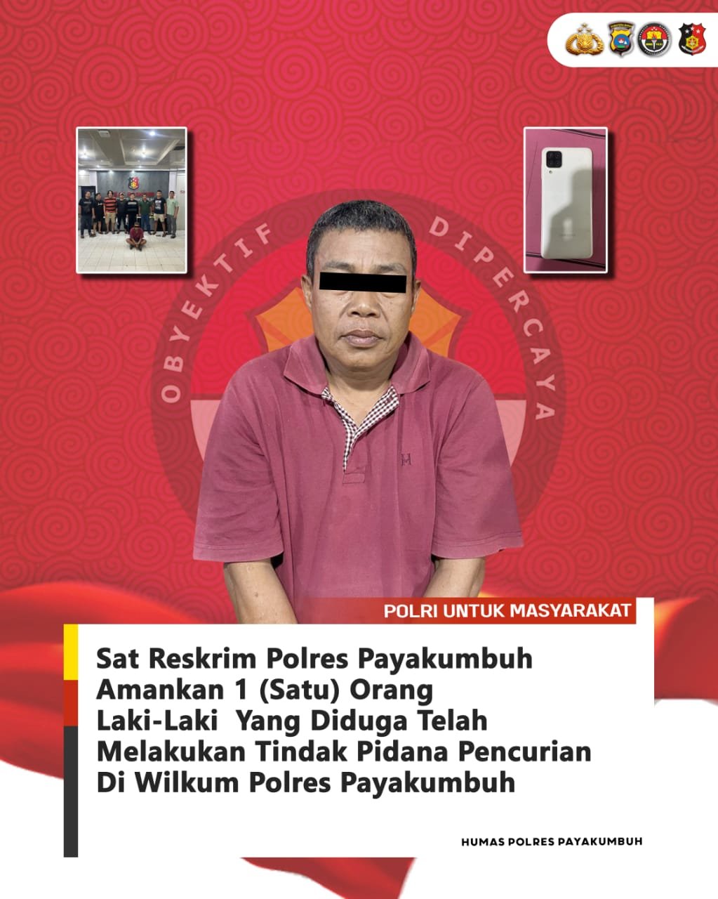 Setelah dilakukan interogasi, tersangka mengakui telah melakukan pencurian di RSKIA Annisa Kota Payakumbuh berupa 1 unit handphone merk Samsung type A12 dan telah menjual handphone tersebut kepada seorang laki-laki berinisial AC.