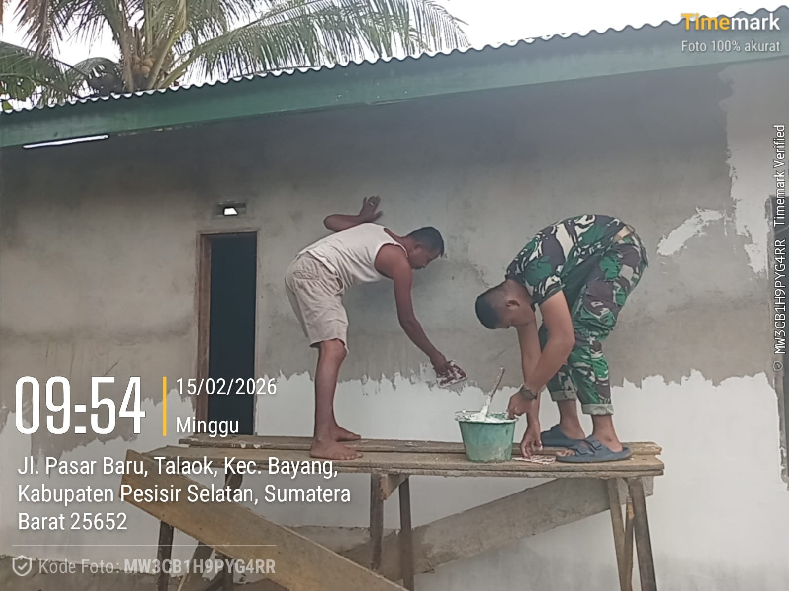 Personil Satgas TMMD Ke- 127 Tahun 2026 Kodim 0311/Pessel Lakukan Percepatan pembangunan RTLH milik Ibu Hayati Warga Nagari Lubuk Pasing Kenagarian Talaok, pada Minggu ( 15/2/206 ).