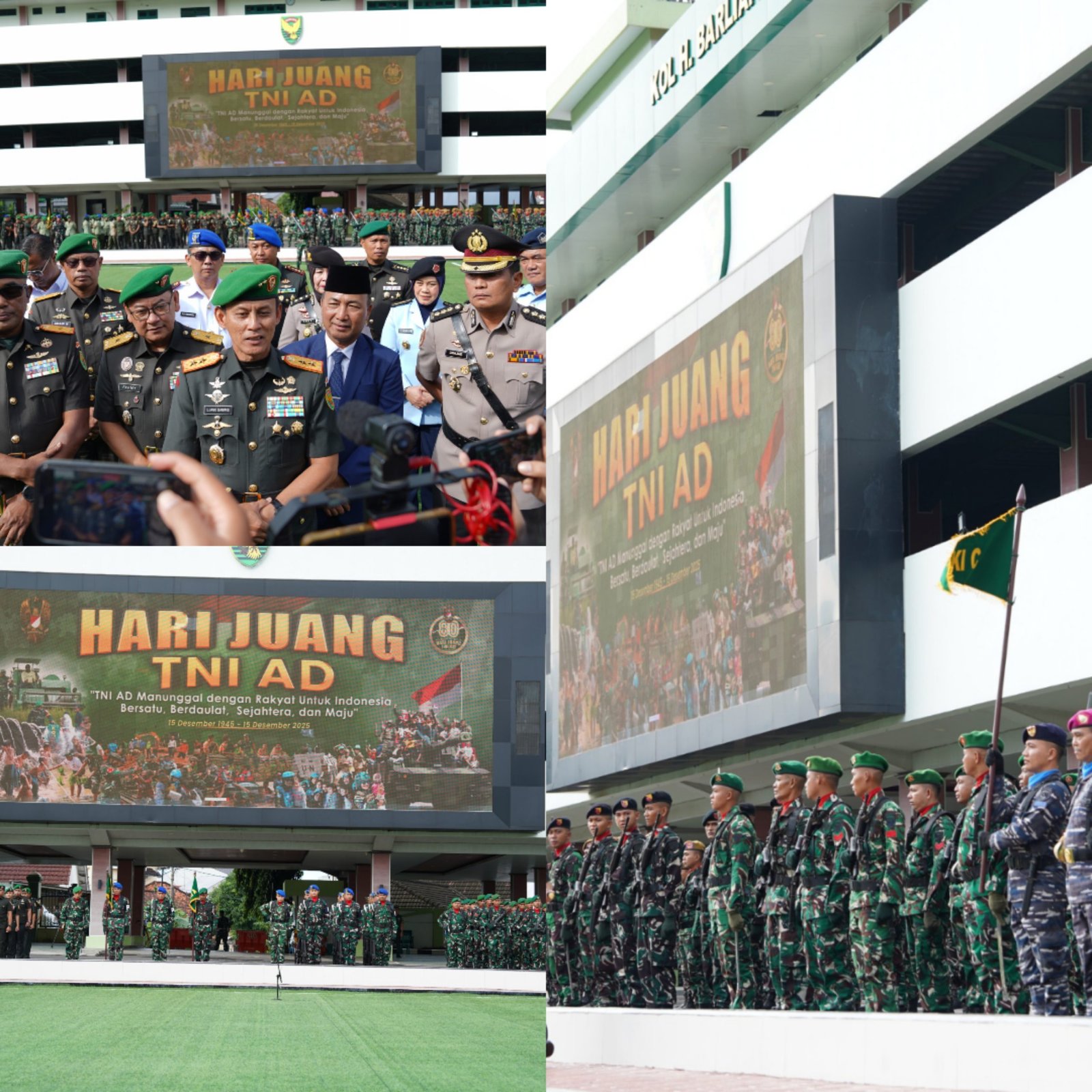 Upacara Peringatan Hari Juang TNI AD kali ini mengusung Tema “TNI AD Manunggal dengan Rakyat untuk Indonesia Bersatu, Berdaulat, Sejahtera dan Maju.” Upacara diikuti oleh barisan lengkap, meliputi Perwira Menengah (Pamen), Perwira Pertama (Pama), Kowad (Korps Wanita Angkatan Darat), Bintara/Tamtama, dan Pasukan Bersenjata dari Matra Laut, Udara, serta Kepolisian, termasuk barisan Pegawai Negeri Sipil.