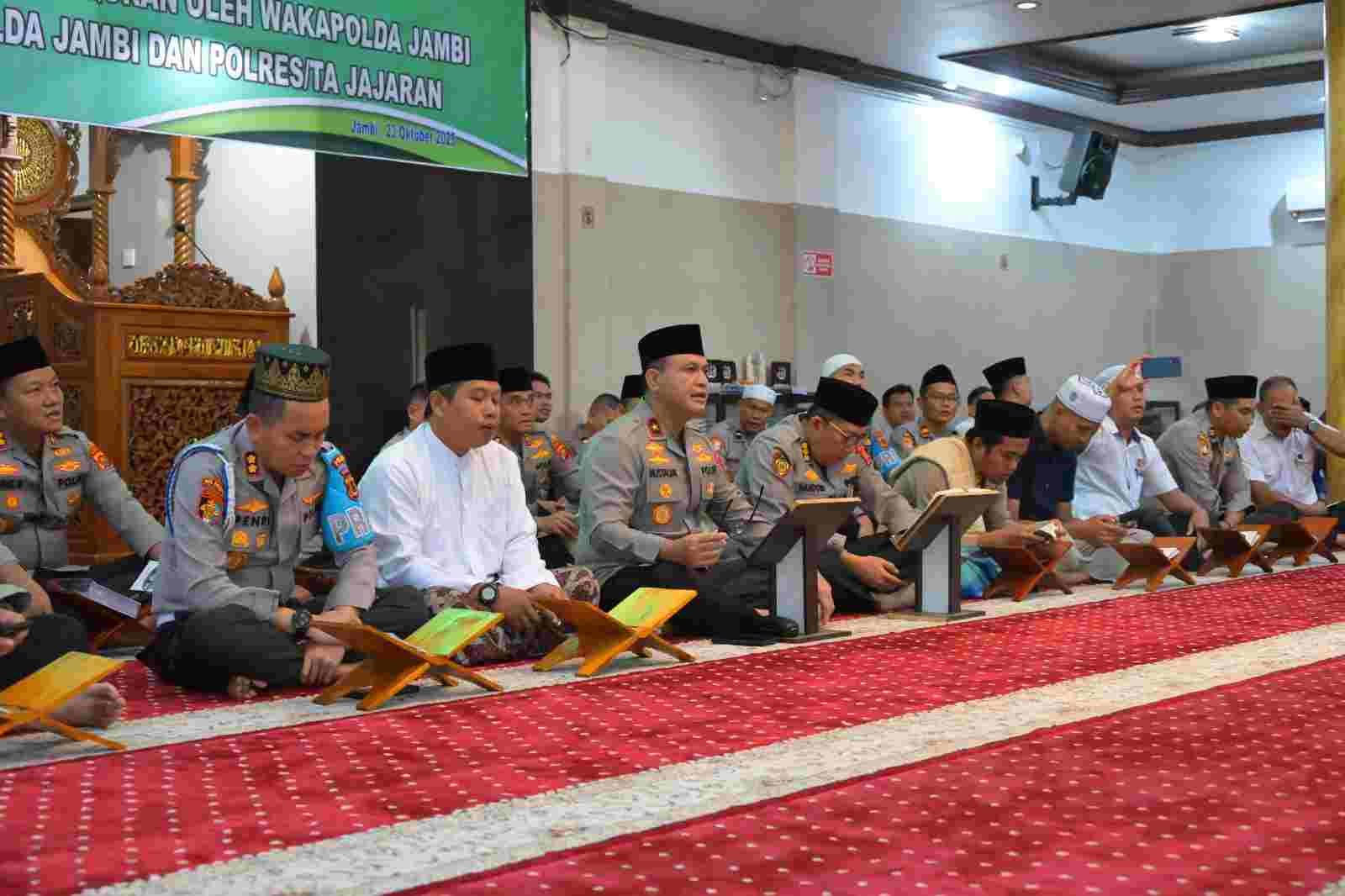 Usai pembacaan Ummul Qur’an, kegiatan dilanjutkan dengan penyerahan Mushaf Al-Qur’an oleh Wakapolda Jambi kepada perwakilan PNPP dan Polres/Ta jajaran, serta pembacaan doa yang dipimpin oleh Ustadz Supriadi.