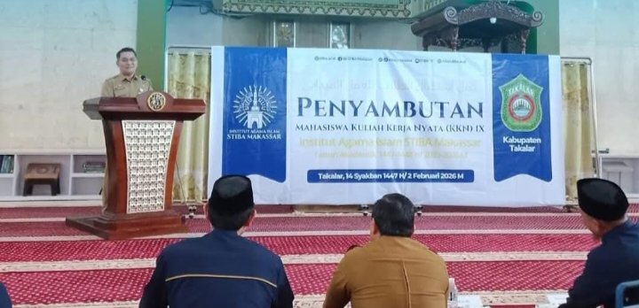Pemerintah Kabupaten Takalar menerima 396 mahasiswa Kuliah Kerja Nyata (KKN) Angkatan IX Institut Agama Islam (IAI) STIBA Makassar di Masjid Agung Takalar, Senin (2/2/2026). Penerimaan tersebut diwakili Kepala Dinas Kominfo-SP Takalar, H. Suhardiyanto, S.STP., M.Si.