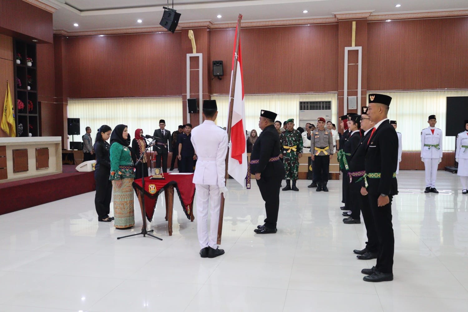 Dalam kesempatan ini, Wali Kota Bandar Lampung Hj. Eva Dwiana Melantik 6 anggota Duta Pancasila Paskibraka Indonesia (DPPI) dan mengukuhkan 38 anggota Pasukan Pengibar Bendera Pusaka (Paskibraka) di gedung semergo, Jumat (15/08/2025).