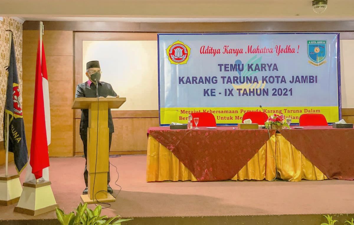 JAMBI.(Benuanews.com)-Wakil walikota Jambi Dr. dr. H. Maulana, MKM membuka Temu Karya Karang Taruna Kota Jambi Ke IX Tahun 2021, Kegiatan dilaksanakan di Hotel Abadi, Jum’at 01/10/21.