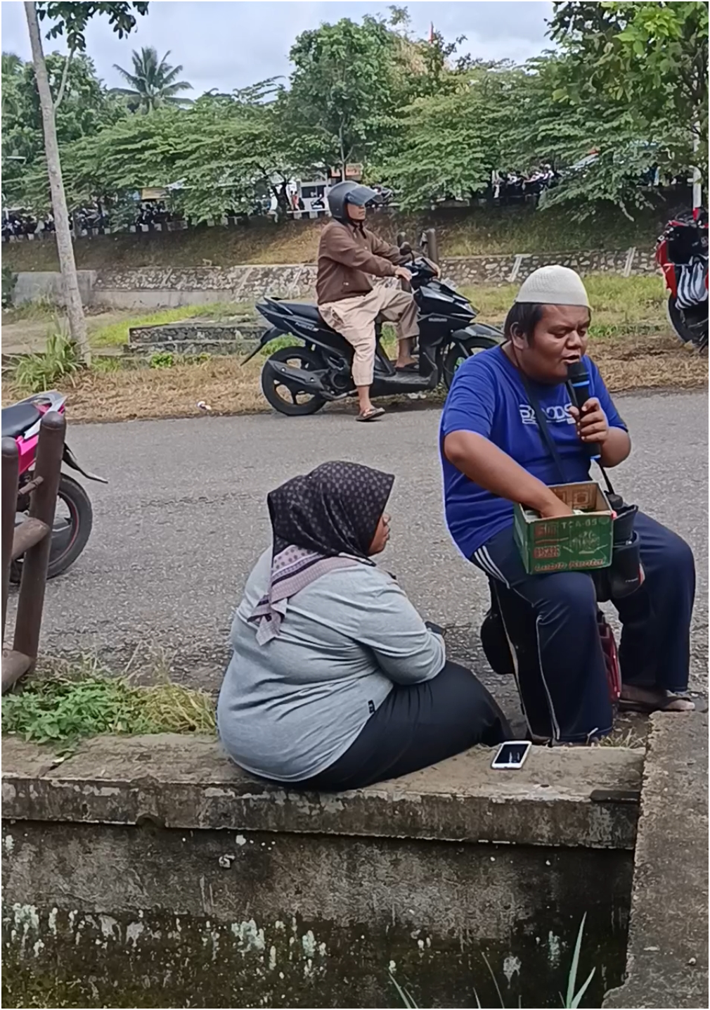 Di temani istri tercintanya, Ainun (31) yang selalu setia menjalani hidup dengan sang suami, keduanya selalu mendukung untuk mencari rezkinya sebagai pengamen, menurut Ainun sang istri suaminya selalu ngamen di lokasi tempat olah di tepian Agam ini.